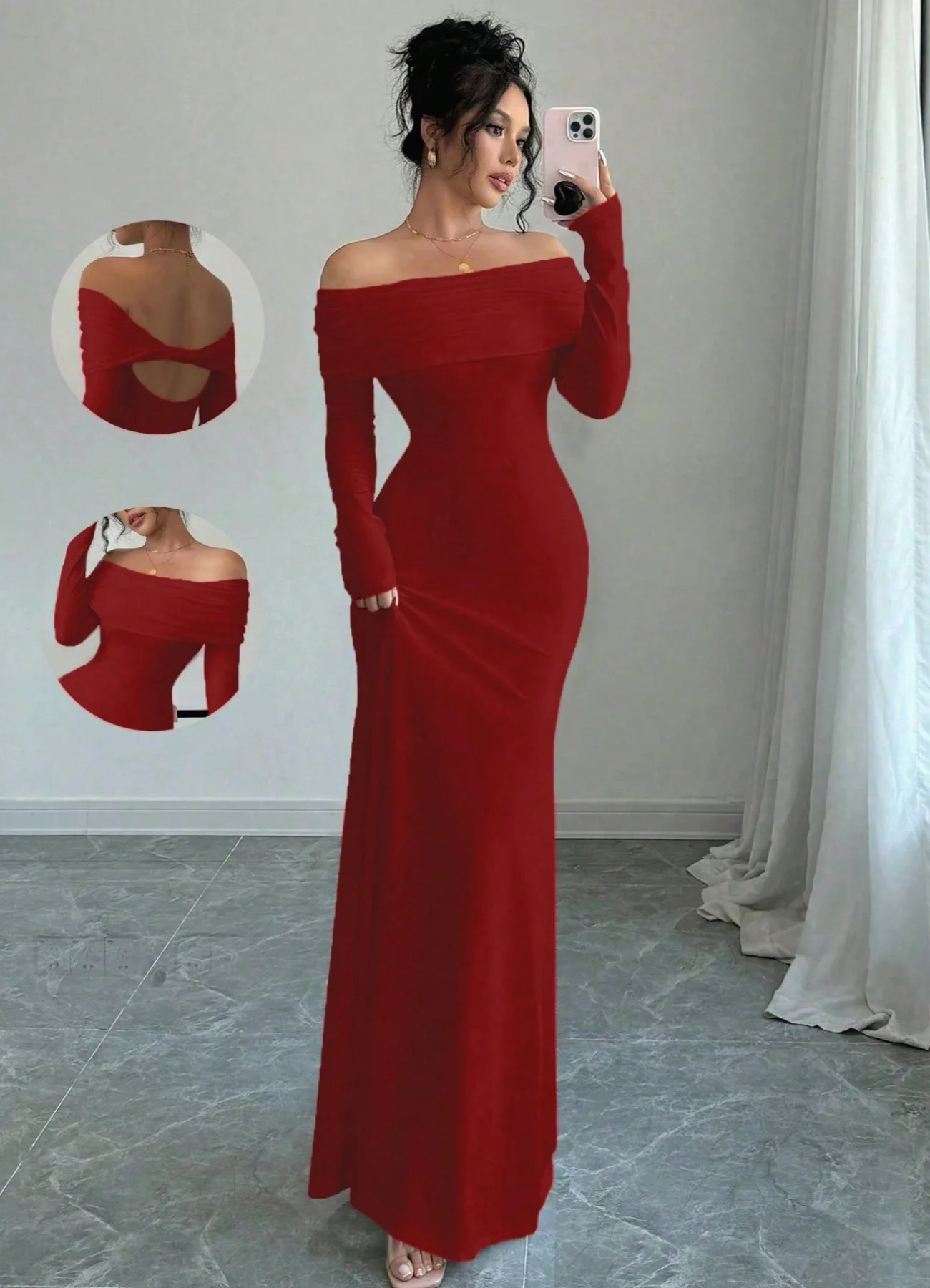 GX24013 Fashion Elegant Clothing Boutique Street Wear Spring Fall Long Sleeve Off Shoulder Backless Maxi Dresses